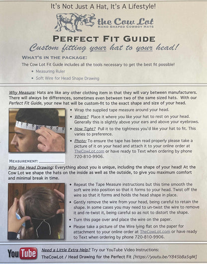 When the fun is done with Measurement and Head Drawing simply go online to pick your hat quality, color & style. Or call your order into 720-810-9906 and we'll help you design the perfect hat.