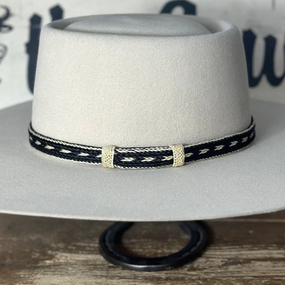 Hat Band | Horsehair 5 Strand w/ White Knots Black/White