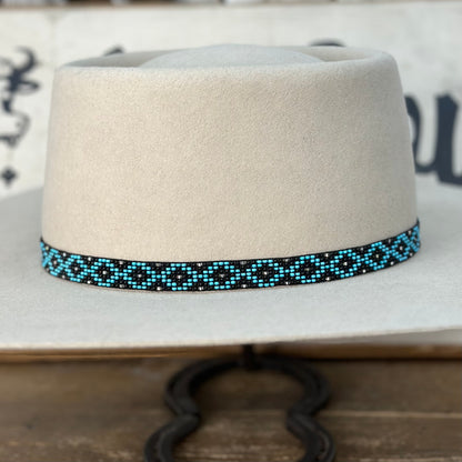 Cinta para el sombrero B1-C | 7 Hileras Elásticas Con Cuentas Negro/Turquesa/Plata