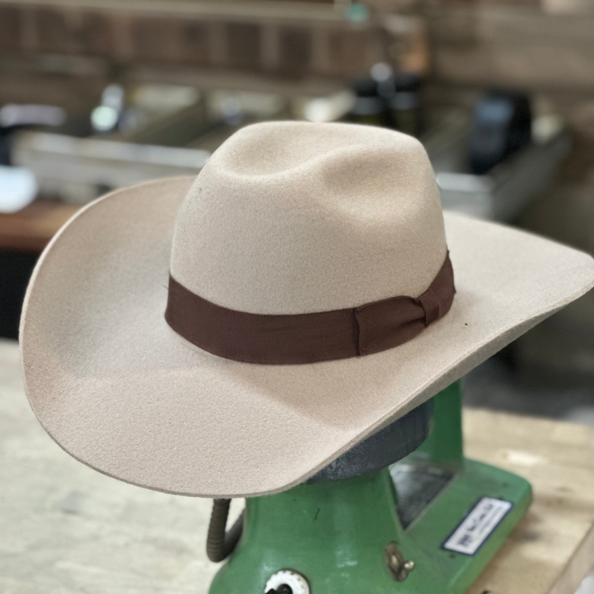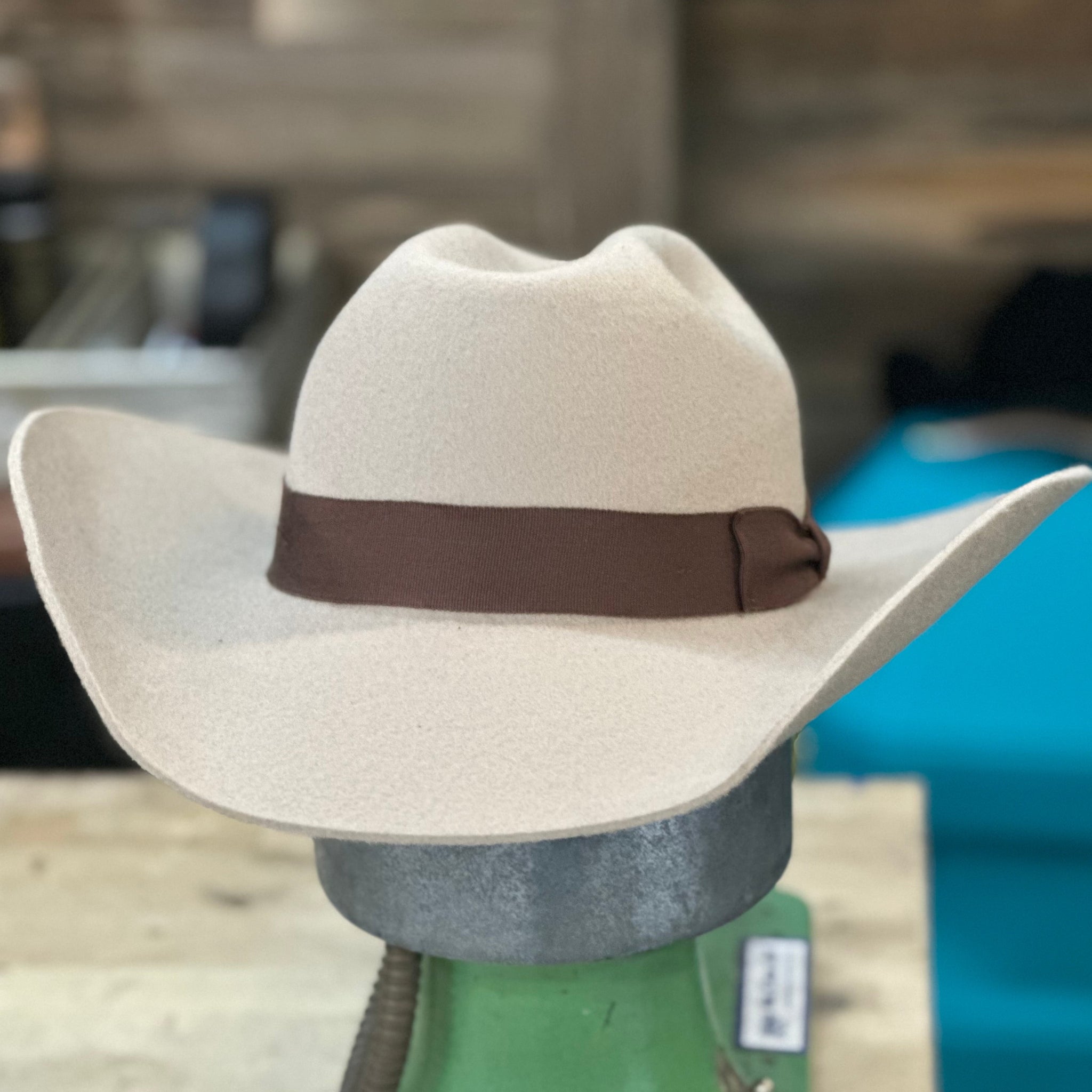 A working cowboy’s crown with a unique lift in the rear—designed for long days, strong looks.
