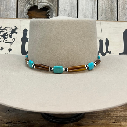 Hat Band |Hat Band Tie Brown Horn W Turquoise Accent HB20-A
