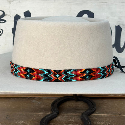 Cinta para el sombrero B3-2A | 13 hileras de cuentas multicolor con extremos de cuero