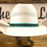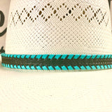 Cinta para el sombrero HB76-5 | Cuero negro de 3/4" con punto de látigo turquesa