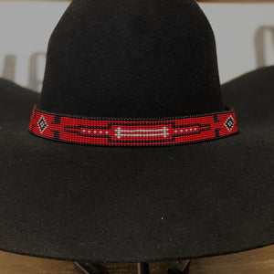 Cinta para el sombrero B3-2C | 13 hileras de cuentas rojas/blancas/negras con corbata