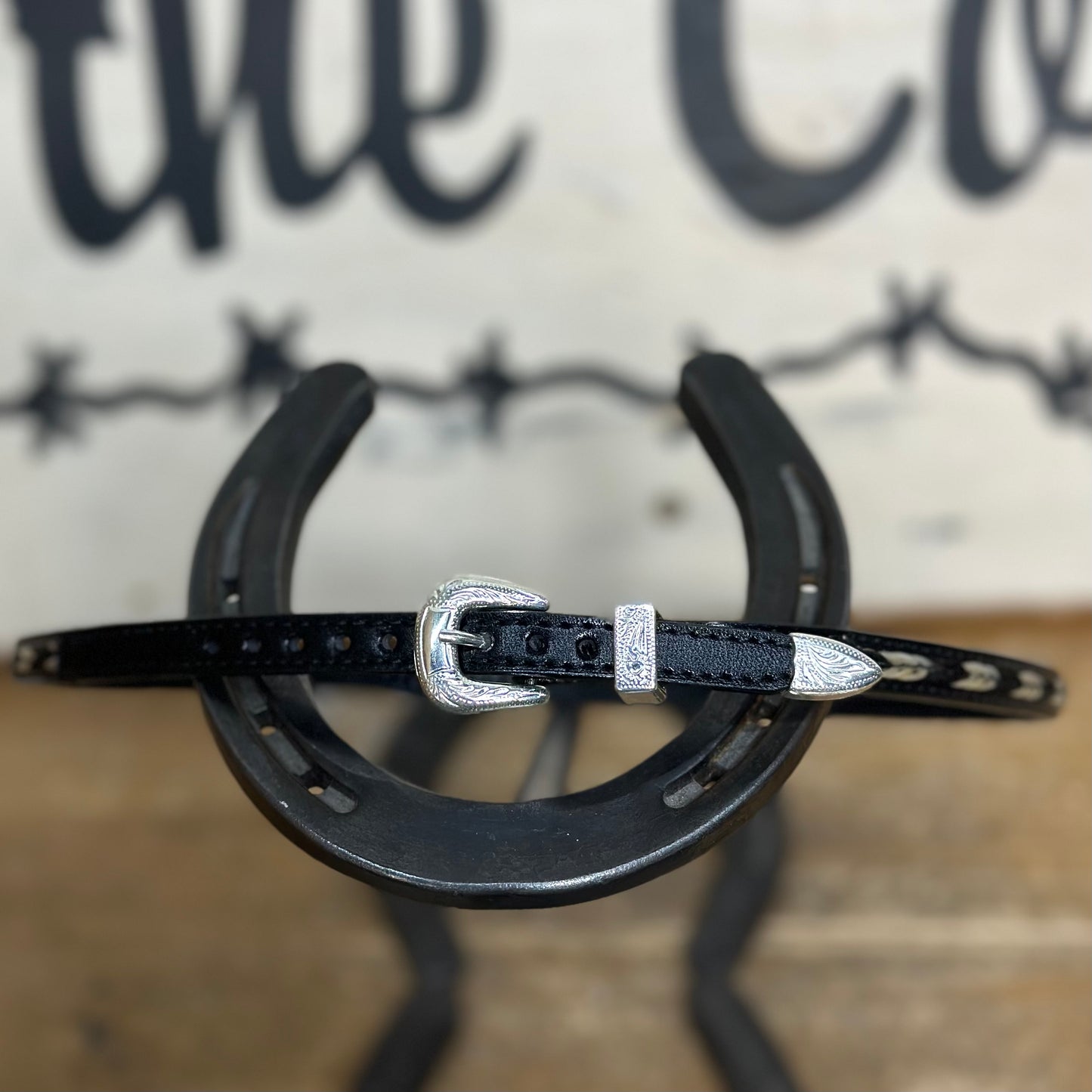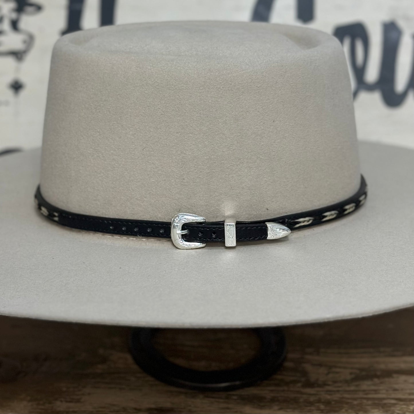 Hatband | Black Leather w/Ivory Horsehair Overlay Braid