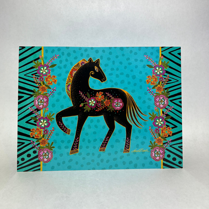 Blank Cards| BLACK HORSE WITH FLORAL DESIGN