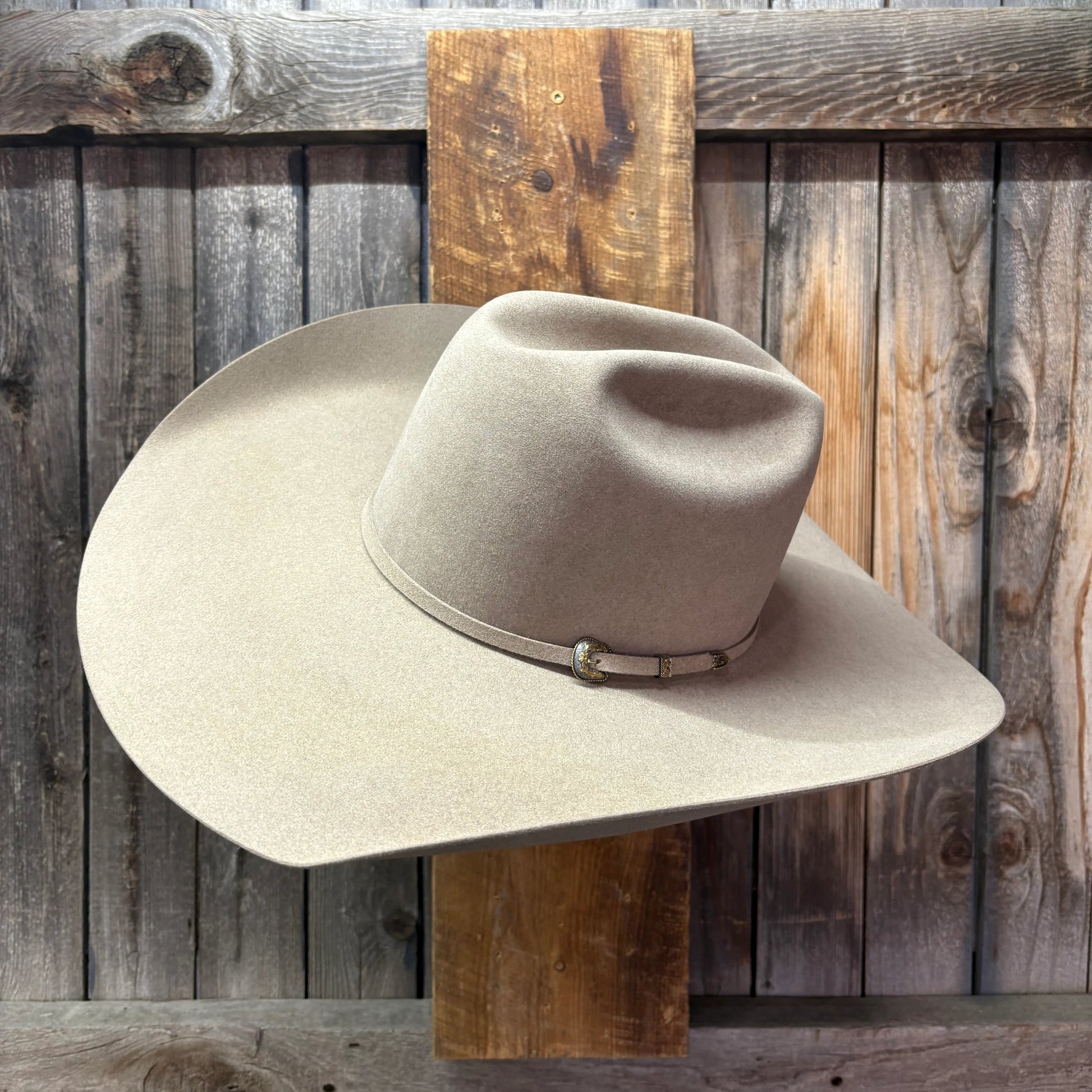 A broader brim adds presence to the classic cattleman look—clean, strong, and sharp.
