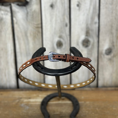 Hat Band | 1/2" Brown Leather w/ Ivory Lacing